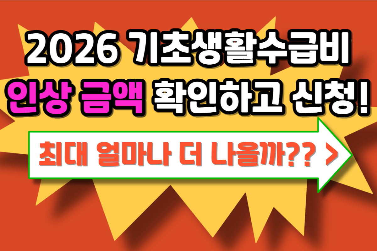 ">생계급여비, 얼른 신청하고 받으세요!!">생계급여비, 얼른 신청하고 받으세요!! 2026년 기준 중위소득 역대 최대 인상으로 기초생활수급자 생계급여비 수급 대상과 지급 금액이 크게 확대되었습니다. 아래의 글에서는 2026년 최신 기준에 따른 생계급여비 산정법과 신청 절차, 그리고 기초생활수급자분들이 받을 수 있는 다양한 복지급여에 대해 상세히 알려드립니다. 기초생활수급자 자격을 신청하고 싶으신 분들은 상단의 버튼과 아래의 썸네일을 클릭하여 대상 조건과 신청 방법을 바로 확인해 보시기 바랍니다. 생계급여뿐만 아니라 다른 급여들도 함께 신청하시면 더욱 좋습니다!">1. 기초생활수급자 생계급여비에 담긴 의미기초생활수급자 생계급여비는 생활이 어려운 국민들의 기본적인 생활 안정을 위해 국가가 현금으로 지원하는..